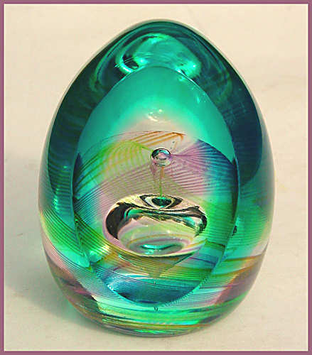 Caithness Glass: Meditation paperweight (LE). Modern design domed paperweight designed by Margot Thomson in 1992 and made in a Limited Edition of 350. Marked on base: "Caithness, Meditation, Scotland, 209/350." Original certificate. Height: 4". SOLD. (#ZL712) |