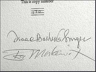 Signatures of Isaac Beshevis Singer and Ira Moskowitz on back page: