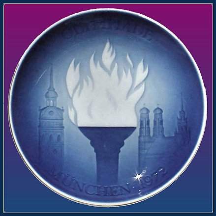 Bing and Grondahl: Olympics plate (1972). "München, 1972". On the back is a B&G mark and is written:"Olympic Games, Munich 1972, First Issue" and numbers 8000/9472. 7¼". $20. (#B084) | ||||||||