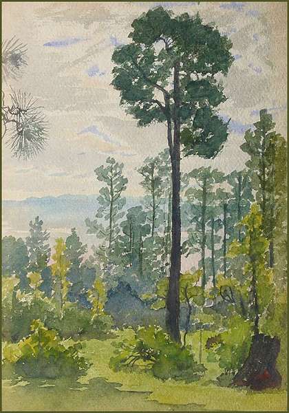 Katherine Joy Postle (1896-1989). "Escambia Bay - Young Pines (Pensacola)" (10" x 14"). Unsigned; title, further description, and date ("Oct 23, 1931") written on back.$125. (#A5AW) |