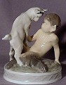 Royal Copenhagen: Faun with goat figurine (#498). This vintage figurine of a faun with a playful goat was designed by Christian Thomsen, whose initials are found next to the faun’s left hand on the light green base. The condition is excellent and the mark on its underside dates it to 1957. Height: 5"; diameter of base: 4¼". SOLD. (#HT048) |