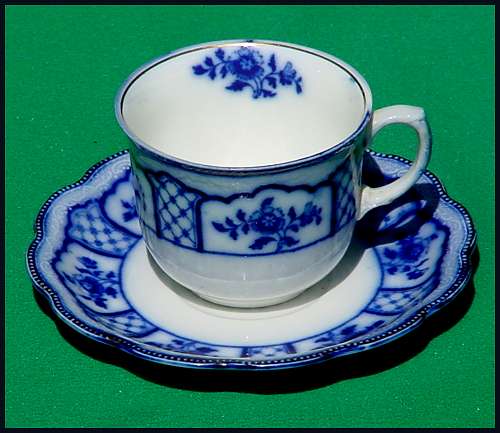 MELBOURNE cup and saucer sets. Cups have gold trim, a floral decoration on the inside and are 2½" (H) x 3¼" (Diam.). Saucers are also gilded and are 5¾"(Diam.). SOLD. Several saucers are still available (see #K032 below). (#K032) |